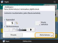 Tulosta määrittämäsi kopiomäärä valitsemalla <Aloita tulostus>. Jos valitsit vaiheessa 5 <Kaikki sivut>, tulostetaan yksi kopio vähemmän kuin määritetty sivumäärä. Jos valitsit vaiheessa 5 <Määritetyt sivut>, tulostetaan kaikki kopiot.