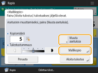 Muuta asetukset valitsemalla <Muuta asetuksia>. <Mallikopio> näkyy, kun asetukset on muutettu. Kopioi malli uudelleen.