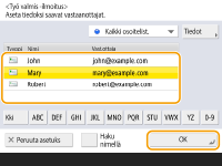 Valitse sähköpostiosoite osoitekirjasta ja valitse <OK>.
