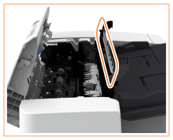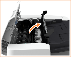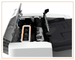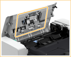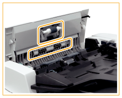 Jos alkuperäisissä tai papereissa näkyy raitoja vielä syöttölaitteen puhdistuksen jälkeenkinLisää syöttölaitteeseen noin 10 arkkia A4-kokoista paperia ja suorita <Syöttölaitteen puhdistus> tekemällä seuraavat toimet. Kun näyttöön tulee viesti puhdistuksen valmistumisesta, tarkista, onko vika poistunut kopioimalla alkuperäinen syöttölaitteella.