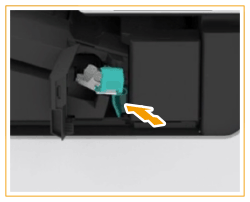Pidä kiinni niittikasetin vihreästä ulokkeesta ja työnnä kasettia sisään niin syvälle kuin se menee.