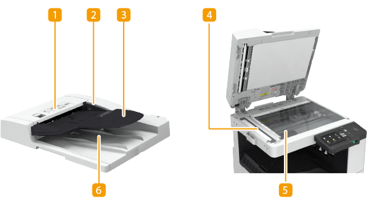 Tähän asetetut alkuperäiset asiakirjat syötetään automaattisesti syöttölaitteeseen. Jos vähintään kaksi arkkia on lisätty, ne voidaan skannata peräkkäin.