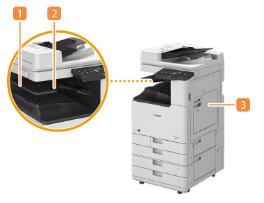 Voit lisätä luovutustason asentamalla sekä Inner 2way Tray-M- että Copy Tray-T-tason. Tämä on kätevää, jos haluat käyttää eri luovutustasoa kullekin toiminnolle, kuten kopioinnille, tulostukselle ja faksaukselle.