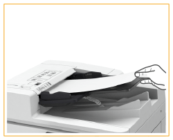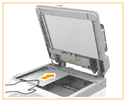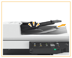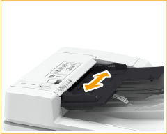 Varmista, että et työnnä alkuperäistä liian lujaa. Muutoin alkuperäistä ei ehkä syötetä oikein tai se voi aiheuttaa paperitukoksen.