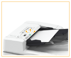 Aseta alkuperäiset tekstipuoli ylöspäin syöttölaitteeseen niin pitkälle kuin ne menevät.
