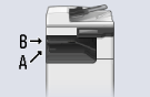 Kun luovutustaso, joka ei tue siirtotilaa, on valittu luovutustason asetuksessa, kopioita ei luovuteta luovutustasolle määritettyjen asetusten mukaisesti, jos <Siirto> on käytössä. Ratkaise ongelma tekemällä jokin seuraavista toimista.
