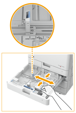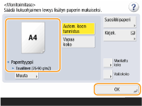 Kun muutat paperikoon, muuta paperikokomerkintä tarpeen mukaan (Asianmukaisen paperikoon tarran kiinnittäminen). Huomaa, että paperikokotarrassa saattaa olla paperikokoja, jotka eivät ole käytettävissä laitteen kanssa.