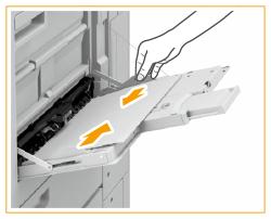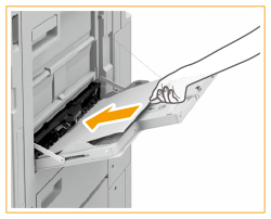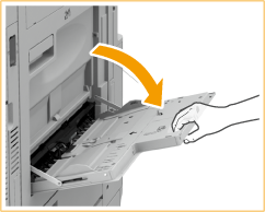 Tulostetun paperin taustapuolelle tulostaminen (2-puolisen sivun 2. puoli)Voit tulostaa tulostetun paperin taustapuolelle. Suorista mahdolliset käpristymät ja aseta paperi monitoimitasolle tulostuspuoli alaspäin (aiemmin tulostettu puoli ylöspäin). Valitse sitten paperityypin valintaikkunassa <2. sivu 2- puol. arkista>.