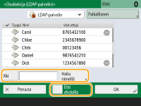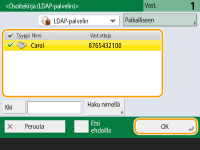 Kohtia <Tallenna uusi vastaanottaja>, <Tiedot/Muokkaa> ja <Poista> kohdassa <Tall./Muokkaa> näytössä Osoitekirja (Paikallinen) voidaan käyttää uusien vastaanottajien tallentamiseen, tietojen tarkistamiseen ja vastaanottajien muokkaamiseen tai poistamiseen.