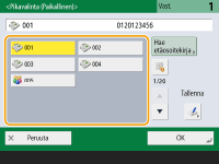 Usein käytettyjen asetusten tallentaminenVoit yhdistää usein käytetyt vastaanottajat ja skannausasetukset laitteen painikkeeseen myöhempää käyttöä varten. Painamalla tallennettua painiketta kun skannaat alkuperäisiä, voit nopeasti koostaa asetuksesi. Usein käytettyjen toimintojen yhdistelmän tallentaminen