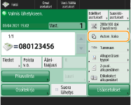 Työn tyyppi: Faksi (muistilähetys) tai Skannaa ja lähetä (faksi/I-faksi)