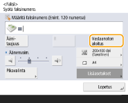 Voit määrittää laitteen vastaanottamaan fakseja automaattisesti, kun saapuva puhelu soi tietyllä aikavälillä. <Vaihda automaattiseen vastaanottoon>