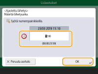 Lisää lähetysaika ja valitse <OK>.