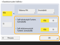 Valitse hallittaville toiminnoille asetus <Ei> ja valitse sitten <OK>.