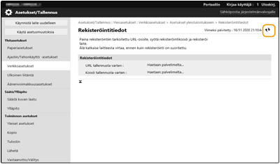 Kun rekisteröinti valmistuu, [Registered] tulee näkyviin kohtaan [Registration Status].