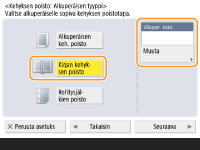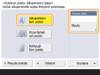 Jos <Alkuper. koko> -kohdassa näkyvä koko ei ole sama kuin alkuperäisen koko, valitse koko valitsemalla <Muuta>. Vain kosketusnäytössä näkyvät alkuperäisten koot voidaan skannata.