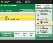 Tämä toiminto on käytettävissä vain, mikäli sähköpostiosoite tai tiedostopalvelin on määritetty vastaanottajaksi.