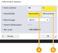Valitse <10BASE-T>, <100BASE-TX> tai <1000BASE-T> kohdassa <Ethernet-tyyppi>.