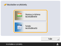 Muista tarkistaa ennen kuin käytät muistivälinettäJotta voit käyttää muistivälinettä, <Muistiväline>-asetuksena on oltava kohdassa <Tallennuspaikan näyttöasetukset> asetus <Kyllä>. <Tallennuspaikan näyttöasetukset>