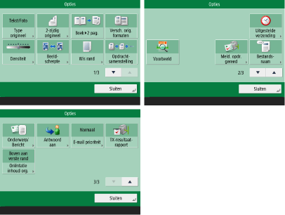 Het scherm met basisfuncties voor scannen en verzenden
