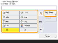 In tegenstelling tot bij het adresboek kunt u niet meer dan een bestemming tegelijkertijd voor registratie selecteren.