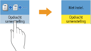 zich bevindt, om het instellingenscherm weer te geven. Wanneer de instelling is gewijzigd, wordt de instellingenstatus bovenaan de knop weergegeven en verandert de kleur van het onderste gedeelte.