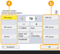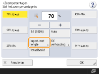 Indien u <Auto> instelt, dient u handmatig een papierformaat te selecteren. Als u geen papierformaat selecteert, dan wordt het zoompercentage automatisch ingesteld op het formaat van het papier dat zich in papierlade 1 bevindt.