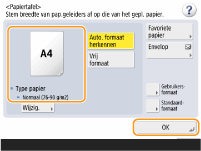Als u het papierformaat wijzigt, wijzig dan zo nodig het papierformaatetiket (Het etiket met het juiste papierformaat bevestigen). Merk op dat het etiket met het papierformaat mogelijk papierformaten bevat die niet beschikbaar zijn op de machine.