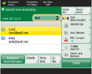 Voor het bekijken van het totale aantal gespecifieerde bestemmingenBoven in het scherm wordt het totaal aantal gespecificeerde bestemmingen weergegeven. Zo kunt u voor verzending bevestigen dat het aantal bestemmingen correct is.