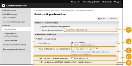 Schakel het selectievakje voor [Verificatie via toetsenbord] in.