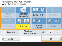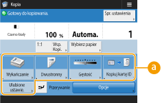 Zmiana ustawień domyślnych na ekranie podstawowych funkcjiPo zmianie ustawień poszczególnych funkcji możesz zarejestrować aktualne ustawienia jako domyślne na ekranie podstawowych funkcji, naciskając