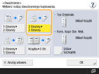 Podczas wykonywania dwustronnych kopii, funkcje niektórych ustawień, takich jak format i rodzaj papieru są ograniczone. Aby uzyskać więcej informacji, patrz Specyfikacja sprzętowa.