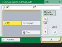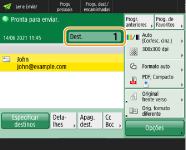 Para verificar o número total de destinos especificadosO número total de destinos especificados é apresentado na parte superior direita do ecrã. Isto permite-lhe confirmar se o número de destinos está correto antes do envio.
