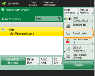 Para selecionar um destino a partir do ecrã <Tecla marc. memórias telefónicas diretas> depois da leitura, programe <Tecla marc mm. tel.dir.> para <Ecrã pré-programado>. O trabalho necessário para enviar documentos digitalizados ao mesmo destino pode ser reduzido. <Ecrã pré-programado>