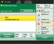 Só pode utilizar este modo se houver um endereço de correio eletrónico ou servidor de ficheiros especificado como destino.