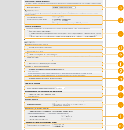 Установите флажок [Локальное устройство], если для управления сведениями о пользователях используется внутренняя база данных аппарата.