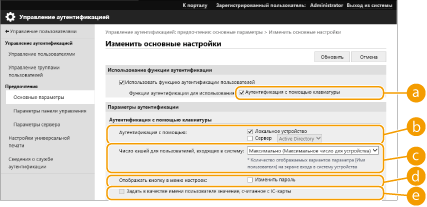 Установите флажок [Аутентификация с помощью клавиатуры].