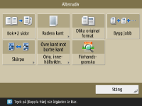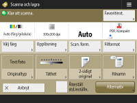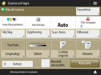 Vissa lägen som beskrivs här refererar till lägen för funktionen <Kopia> eller <Scanna och skicka>.