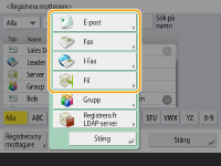 Om du vill ändra eller ta bort information för mottagare registrerade i adressboken, se Redigera registrerade mottagare i adressboken.