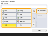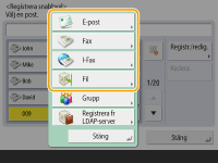 Om du vill ändra eller ta bort information om mottagare registrerade i snabbknappar, se Redigera registrerade mottagare i snabbvalsknappar.