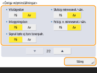 Även om ljuder för inkommande är inställt på <Av> avges ljudet för inkommande när ett fax anländer under viloläge om strömförbrukningen i viloläget är inställd på låg. <Energiförbrukning i viloläge>