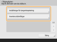 Tryck på <Inställningar för tangentrepetering> för att ändra hastigheten som samma tecken anges upprepade gånger i när en knapp hålls nere. Den här inställningen kan förhindra användare från att oavsiktligt skriva samma tecken mer än en gång när inmatningar görs långsamt.