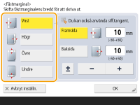 Du kan skapa fästmarginaler för häftning eller hålslagning. Du kan ange fästmarginaler individuellt för framsidan och baksidan.