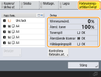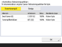Du kan kontrollera återstående mängd förbrukningsartiklar från Remote UI (Fjärranvändargränssnittet). Kontrollera maskinens status