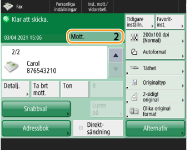 För att kontrollera status för skickade dokumentPå skärmen <Statusmonitor> kan du kontrollera statusen för skickade dokument. På den här skärmen kan du skicka fax igen eller avbryta sändning när du har kontrollerat statusen. Kontrollera status och logg för avsända och mottagna dokument