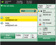 Om du vill kontrollera det totala antalet mottagare som har angettsDet totala antalet mottagare som har angetts visas högst upp till höger på skärmen. Det gör det möjligt för dig att bekräfta att antalet mottagare är korrekt före sändning.