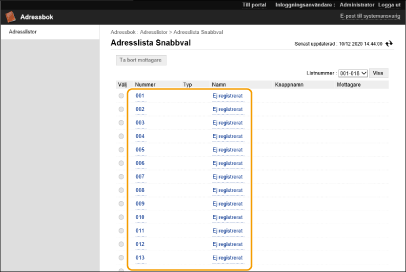 Klicka på [Not Registered] eller ett oregistrerat snabbvalsnummer.
