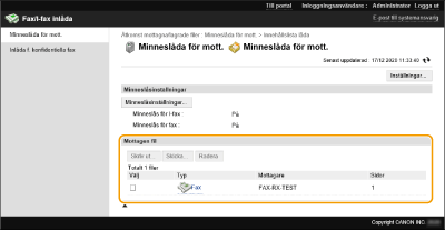 Du kan använda Remote UI (Fjärranvändargränssnittet) för att skriva ut, skicka, eller radera fax och I-fax som tillfälligt lagras i inlådan Fax/I-Fax.