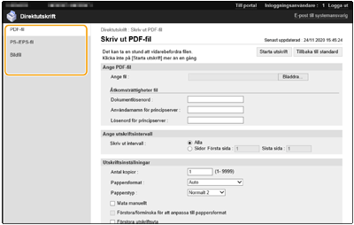 Genom att använda Remote UI (Fjärranvändargränssnittet) kan du skriva ut filer som sparats på en dator eller i nätverket direkt på maskinen, utan att använda skrivardrivrutinen. Du behöver inte öppna filerna på datorn för att skriva ut dem.
