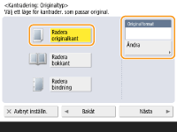 Tryck på <Radera originalkant> och kontrollera <Originalformat>.